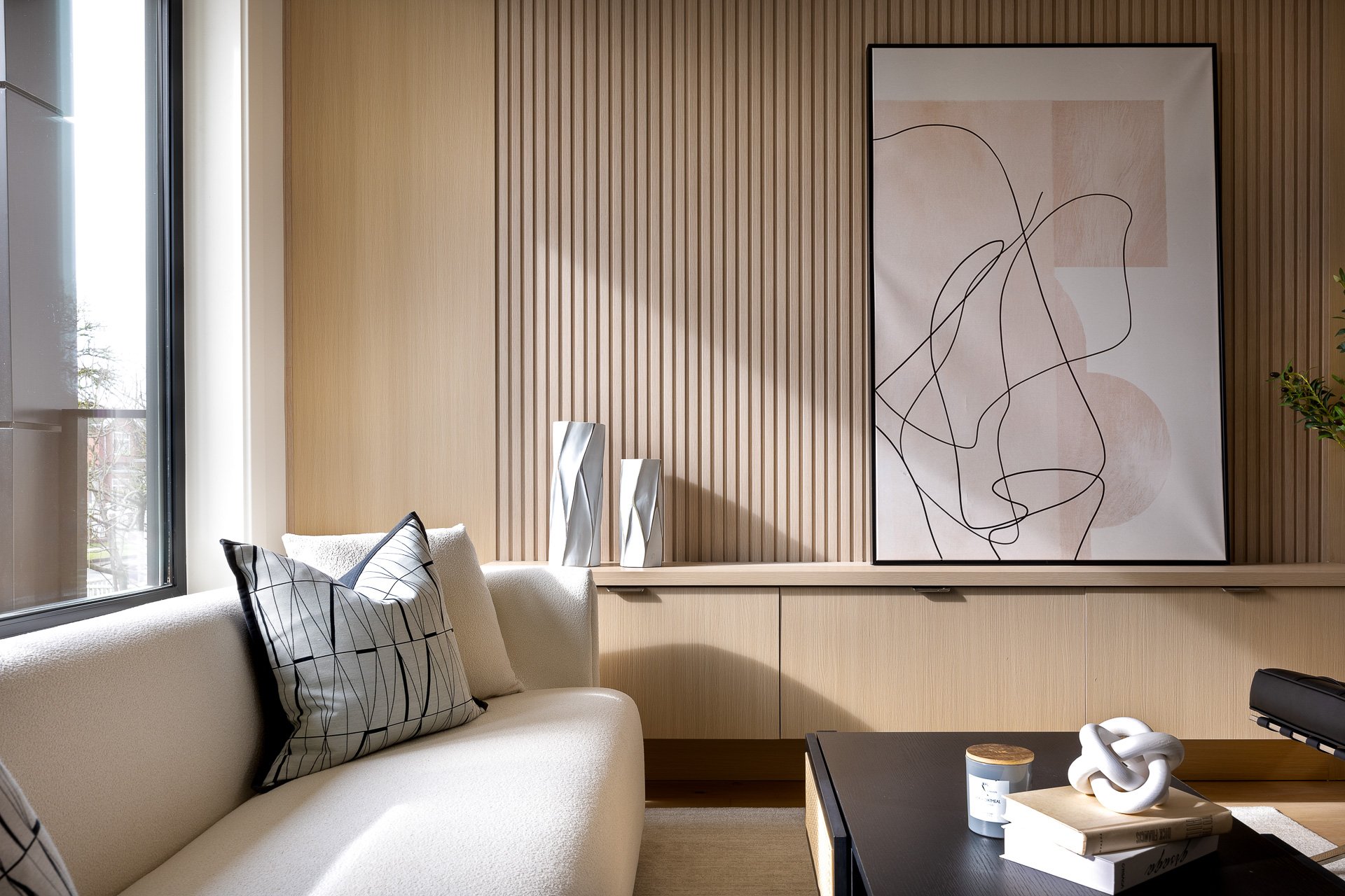 Photographed in West Vancouver with an emphasis on soft light, gentle shadows, and a muted, slightly moody atmosphere — reflecting the designer’s vision and the client’s refined sense of style.